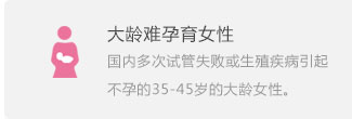 大齡難孕女性、國內(nèi)多次試管失敗、有個(gè)性化生育需求者、身體疾病無法自行生育者